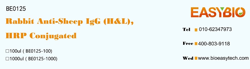 产品名称:   兔抗绵羊IgG(H+L),HRP