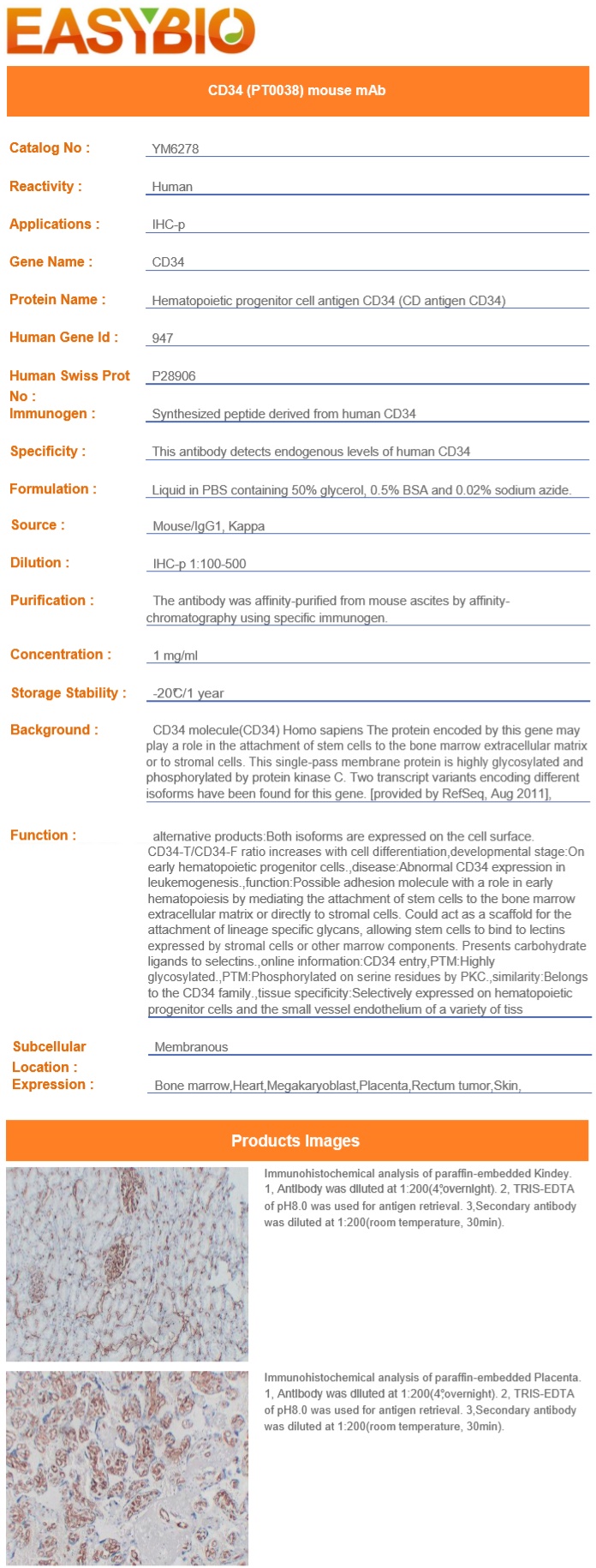 | Product Name: | CD34_PT0038_mouse_mAb |