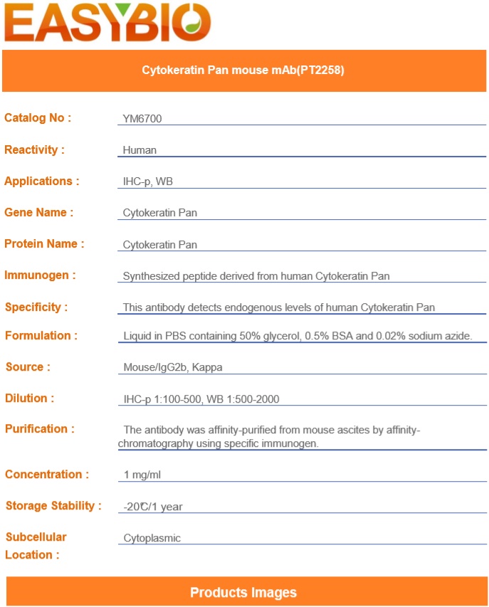 Product Name: Cytokeratin_Pan_mouse_mAbPT2258