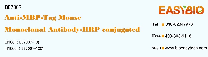 Maltose binding protein (MBP) is a useful affinity tag that can increase the expression level and solubility of the MBP tagged protein. It promotes proper folding of the fusion protein, and it can be also used to prevent an insoluble form (inclusion bodies). MBP Tag antibody is suitable for detecting fusion proteins that contain a MBP-tag.