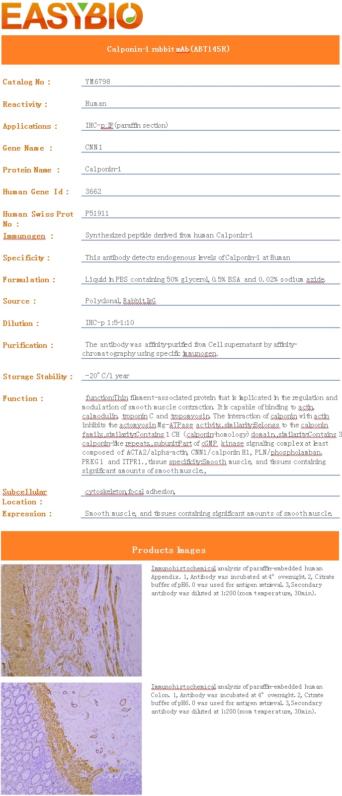 Product Name: Calponin-1 rabbit mAb(ABT145R)