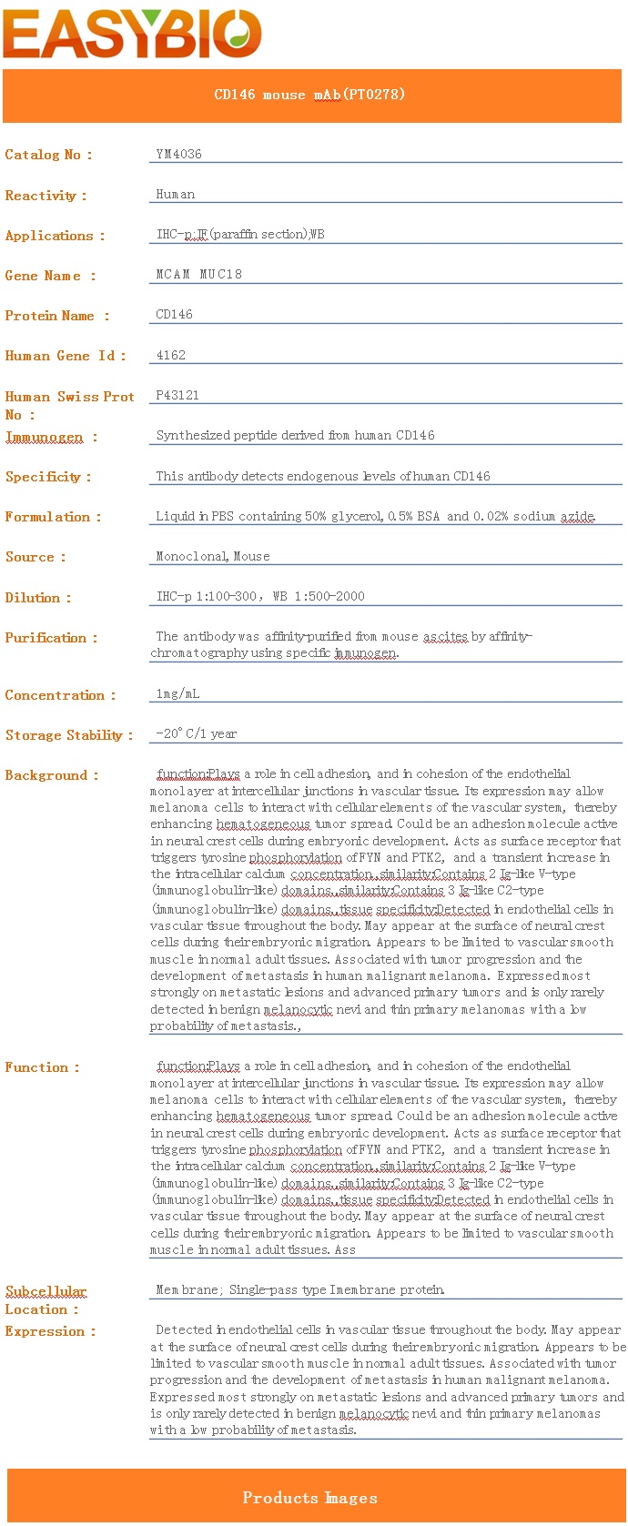 | Product Name: | CD146 mouse mAb(PT0278) |