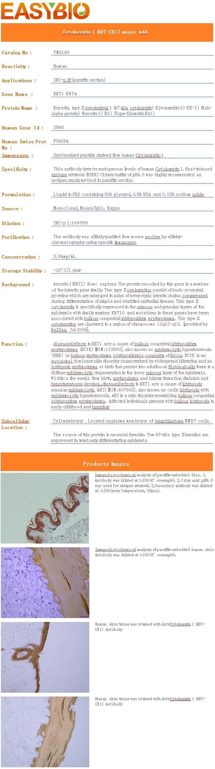 | Product Name: | Cytokeratin 1 (ABT-CK1) mouse mAb |