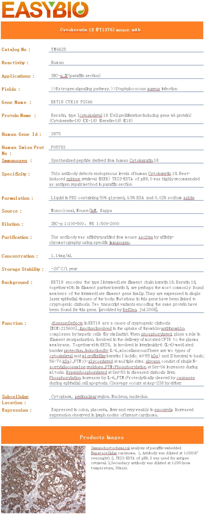 | Product Name: | Cytokeratin 18 (PT1876) mouse mAb |