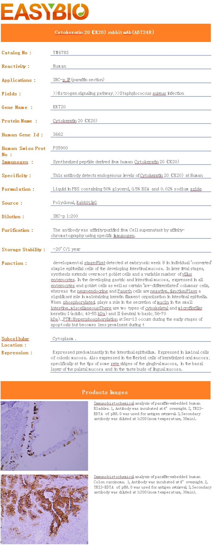 | Product Name: | Cytokeratin 20 (CK20) rabbit mAb(ABT24R) |