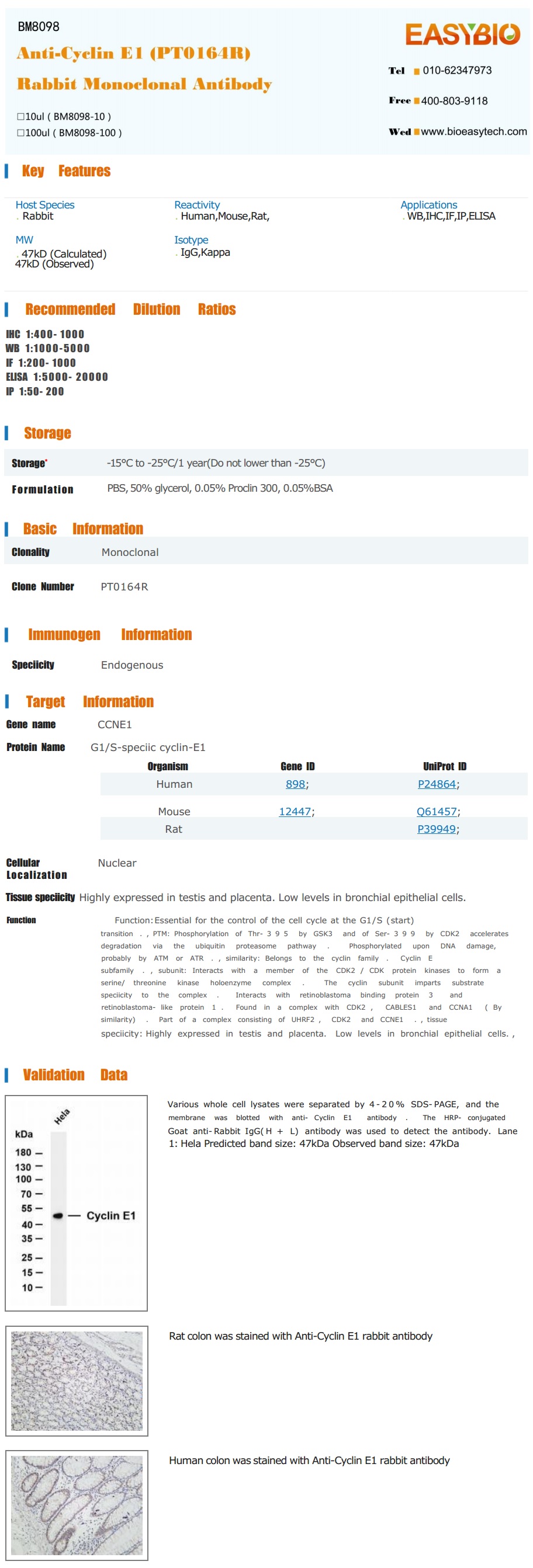 | Product Name: | cyclin E1 Rabbit Monoclonal Antibody |
