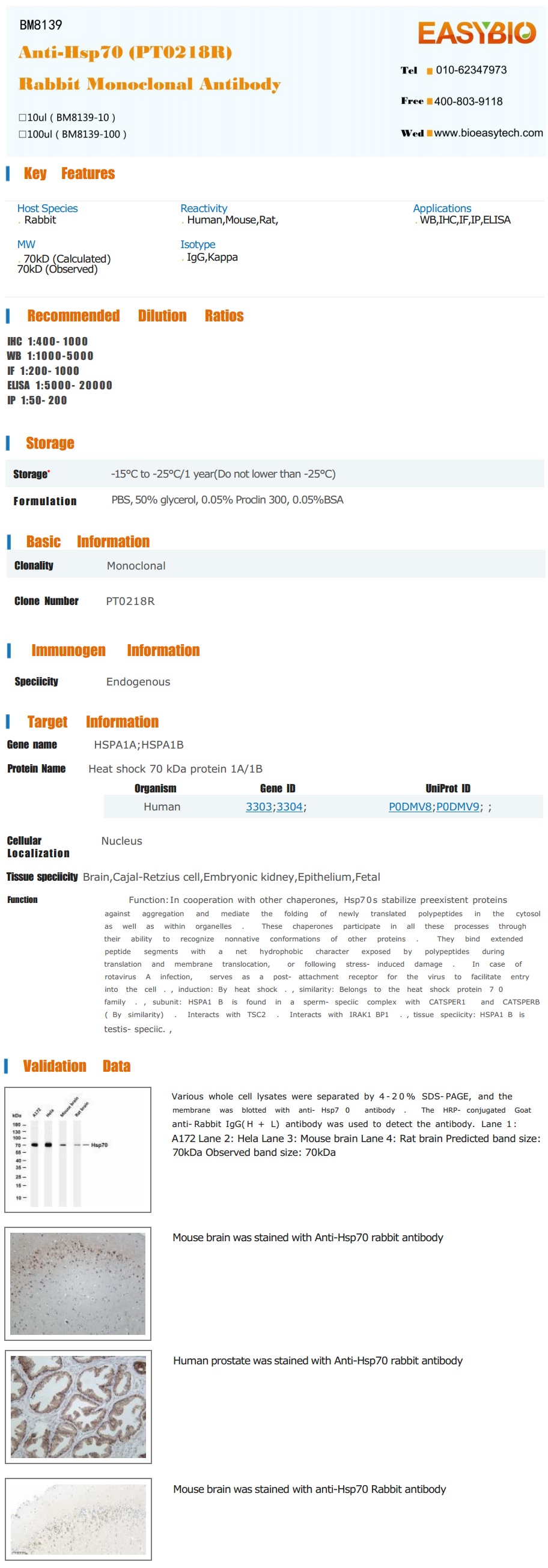 | Product Name: | HSP70 Rabbit Monoclonal Antibody |