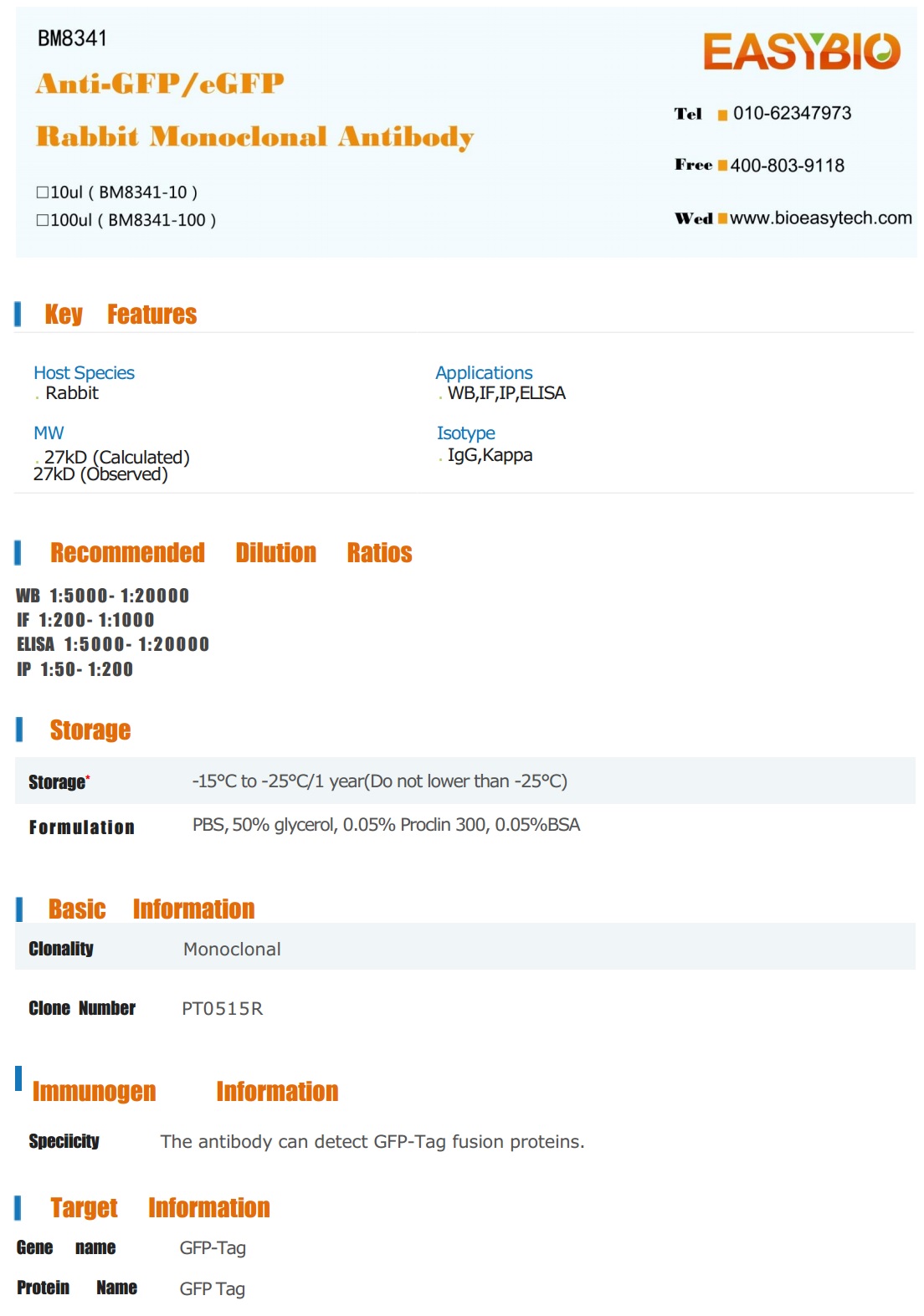 Storage Buffer : PBS, 50% glycerol, 0.05% Proclin 300, 0.05%BSA