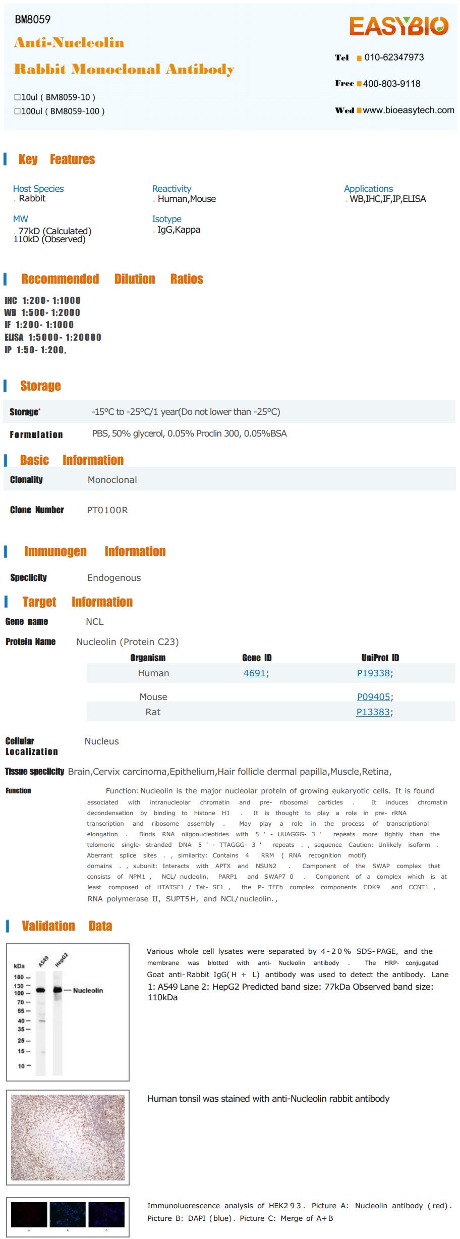 | Product Name: | Nucleolin Rabbit Monoclonal Antibody |