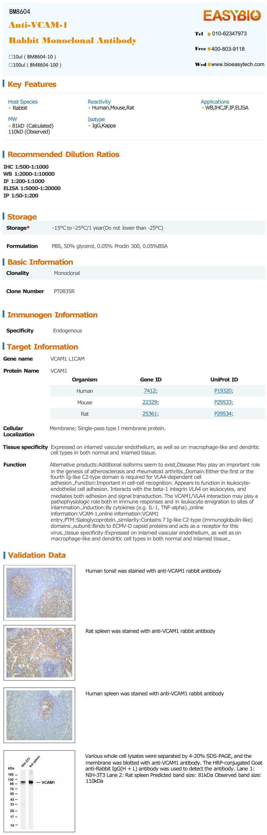 | Product Name: | VCAM-1 Rabbit Monoclonal Antibody |
